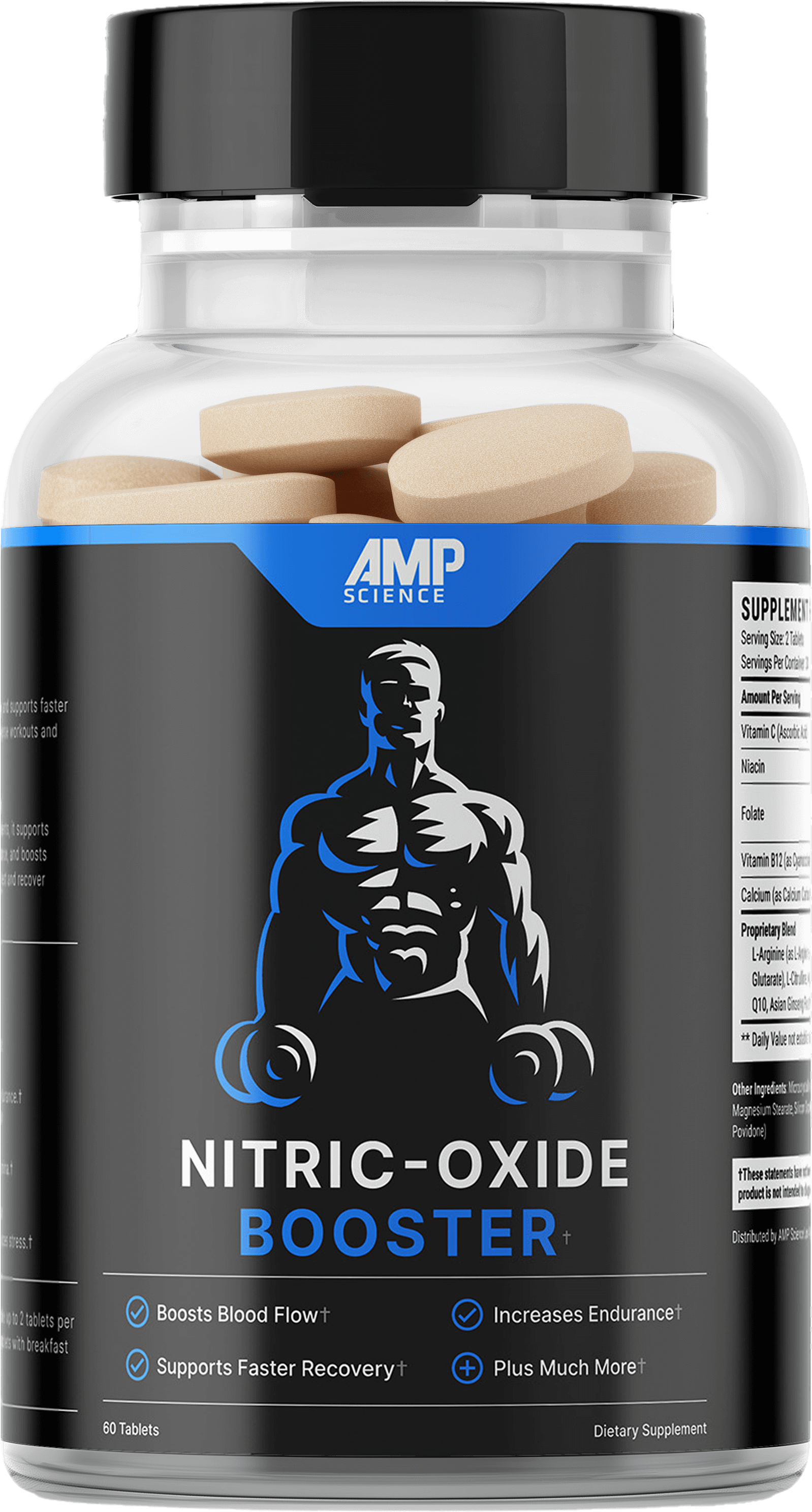 AMP Science Nitric Oxide Booster is a natural performance formula designed to support blood flow, endurance, and muscle recovery. Featuring key ingredients like L-Arginine, L-Citrulline, Ginseng, and Taurine, it helps your body deliver oxygen and nutrients where they're needed most — helping you push harder and recover faster.